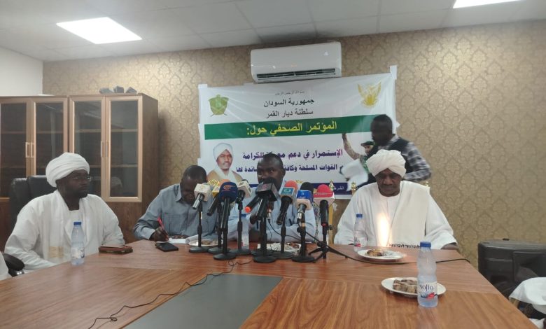 في كلمة قوية ومؤثرة خلال المؤتمر الصحفي الذي عُقد بدار الشرطة اليوم السبت، أعلن السلطان هاشم عثمان هاشم، سلطان سلطنة “ديار قمر”، وقوف سلطنته الكامل واللامحدود مع القوات المسلحة السودانية في معركتها ضد الميليشيات الإرهابية. واستعرض السلطان خلال حديثه الإرث النضالي للسلطنة، موجهاً رسائل حازمة للداخل والخارج حول الاستمرار في إسناد القوات المسلحة وكافة القوات المساندة لها.