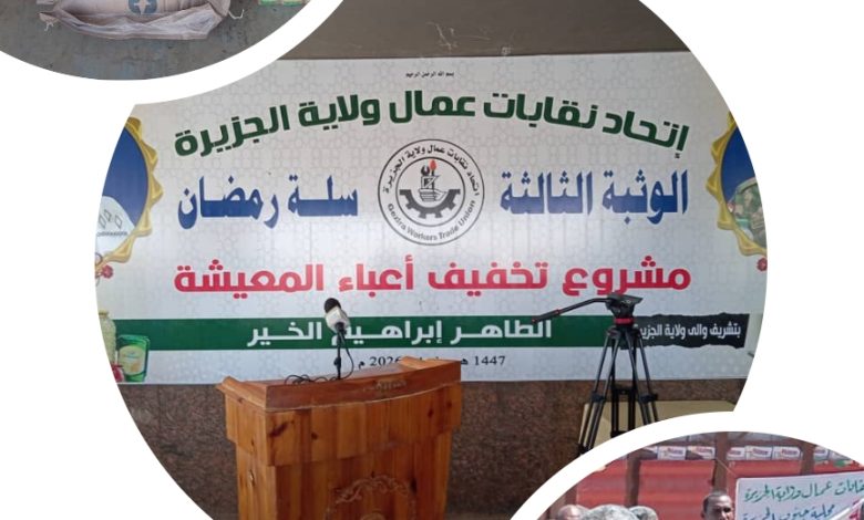بتكلفة بلغت (17) مليار اتحاد نقابات عمال ولاية الجزيرة يدشن برنامج سلة رمضان للعاملين بالولاية ــ مدني:عبدالوهاب السنجك/شاكرمختار