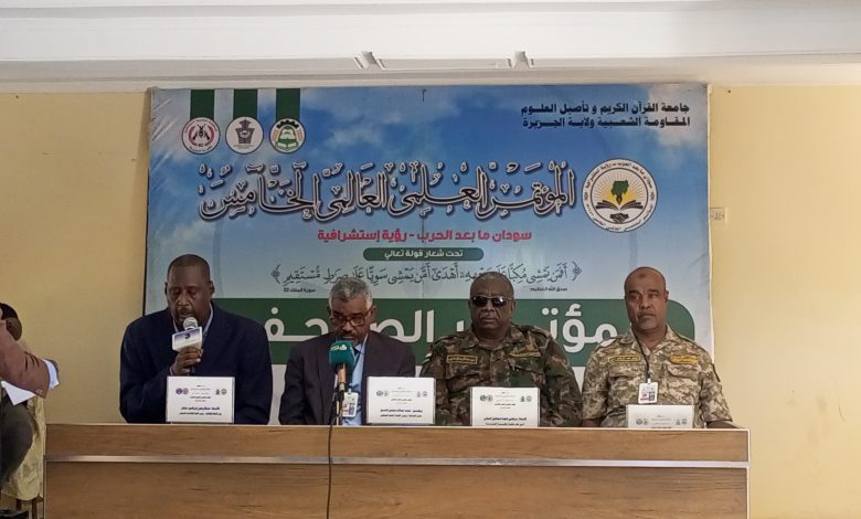 أعلنت جامعة القرآن الكريم وتأصيل العلوم  بالشراكة مع المقاومة الشعبية بولاية الجزيرة (وسط السودان)بإكتمال الترتيبات لانطلاق المؤتمر العلمي العالمي الخامس “سودان ما بعد الحرب.. رؤية استشرافية” في الفترة من يوم” 23-24″ نوفمبر الجاري،