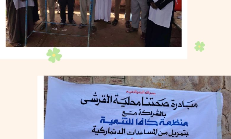 دشنت مبادرة صحتنا بمحلية القرشي ظهر اليوم بنادي الرابطة الرياضي بالحي الأوسط بمدينة ٢٤ القرشي توزيع الناموسيات ضمن مشروعها الثاني ، وذلك بحضور مدير الرعاية الإجتماعية بالمحلية الدكتور بشرى الأمين ممثل منظمة كافا للتنمية بولاية الجزيرة و رئيس منظومة العمل الموحد الشيخ الأمين حمدالنيل و رئيس منظمة المساعي الحميدة الشيخ جلال السيد بابكر و ممثل شعبة الإستخبارات العسكرية
