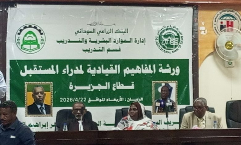 نظّم البنك الزراعي السوداني – قطاع الجزيرة ورشة تدريبية متخصصة بعنوان “المفاهيم القيادية لمدراء المستقبل”، استهدفت تأهيل وتطوير الكوادر الشابة وتعزيز قدراتهم القيادية بما يسهم في إعداد جيل جديد من القيادات المصرفية القادرة على مواكبة التحديات المتغيرة.