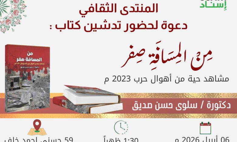 وتبرز أهمية الفعالية في كون المؤلفة الدكتورة سلوى حسن صديق تجمع في ثنايا كتابها الجديد بين دقة الباحثة الأكاديمية وحرفية الكاتبة الصحفية التي لم تكتفِ بنقل الخبر، بل غاصت في عمق المأساة الإنسانية لتستخرج منها شهادات حية توثق مرحلة تاريخية استثنائية من تاريخ السودان المعاصر. وباعتبارها قامة جامعية وإعلامية مرموقة، تقدم دكتورة سلوى في إصدارها “من المسافة صفر” رؤية تحليلية نقدية ومشاهدات واقعية تلامس الوجدان، مما يجعل من تدشين الكتاب في منتدى إسناد الدوري حدثاً يتجاوز حدود القراءة التقليدية إلى كونه صرخة في وجه النسيان واحتفاءً بقدرة المثقف السوداني على الصمود والإبداع تحت أقسى الظروف. ويجسد هذا التعاون بين المبادرة والكاتبة الدور المحوري الذي تلعبه منظمات المجتمع المدني في دعم الحراك التنويري، مؤكداً أن “إسناد” ليست مجرد جهة إغاثية، بل هي مؤسسة وطنية تدرك أن الحفاظ على الهوية السودانية يمر عبر بوابة الثقافة والتوثيق الأمين.