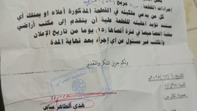 بسم الله الرحمن الرحيم ــ ولاية الجزيرة ــ وزارة التخطيط العمراني والمرافق العامة مصلحة الاراضي ــ محلية الحصاحيصا ــ إعلان ــ بعانخي برس