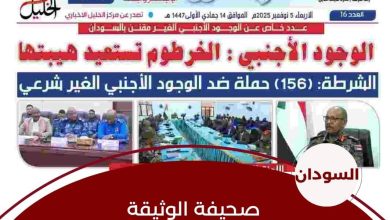 بورتسودان: بعانخي برس صدر مؤخرًا العدد السادس عشر من صحيفة “الوثيقة”، الصادرة عن إدارة الإعلام والعلاقات العامة…