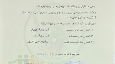 مدني: عبدالوهاب السنجك أصدر د. جبريل إبراهيم محمد رئيس حركة العدل والمساواة السودانية القرار رقم (6) لسنة…