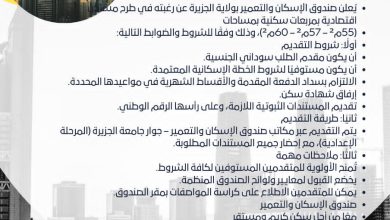 ولاية الجزيرة وزارة التخطيط العمراني والإسكان صندوق الإسكان والتعمير إعلان طرح مساكن اقتصادية يُعلن صندوق الإسكان والتعمير بولاية…