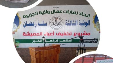 بتكلفة بلغت (17) مليار اتحاد نقابات عمال ولاية الجزيرة يدشن برنامج سلة رمضان للعاملين بالولاية ــ مدني:عبدالوهاب السنجك/شاكرمختار