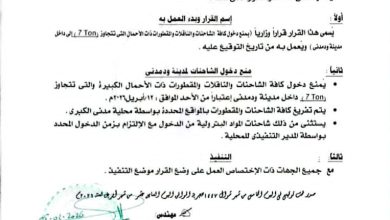 مدني : شاكرمختار اصدرت حكومة ولاية الجزيرة ، اليوم قرارا بمنع كافة الشاحنات والمقطورات والناقلات ذات الاحمال…