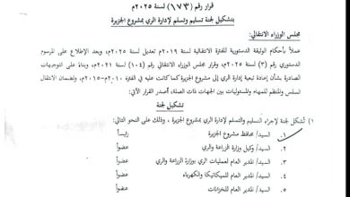 قرار بتشكيل لجنة تسليم وتسلم لادارة الري بمشروع الجزيرة ــ مدني :عبدالوهاب السنجك
